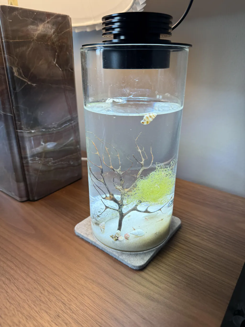 - Clear self-contained ecosystem vessel